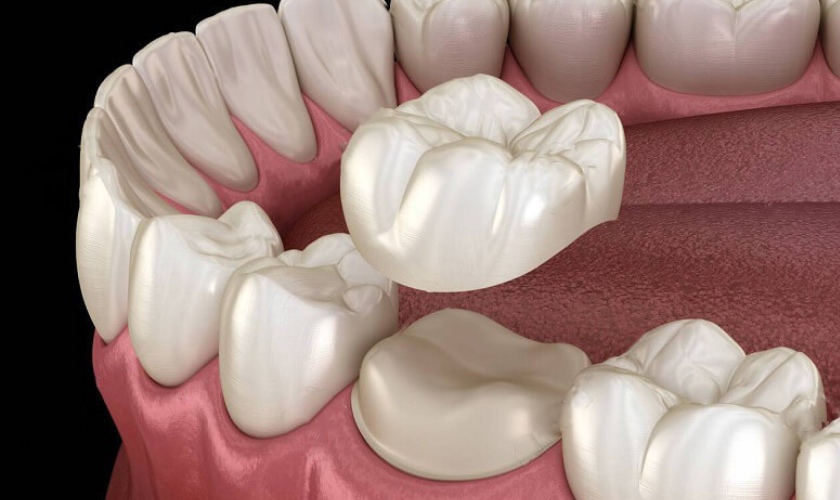 Với phương pháp này, đầu tiên bác sĩ sẽ mài chỉnh răng cần điều trị. Sau đó thực hiện lấy dấu và chế tác răng sứ. Cuối cùng lắp mão sứ lên trên cùi răng đã được sửa soạn, đảm bảo khít sát với răng thật và không gây cộm vướng, khó chịu cho người dùng.